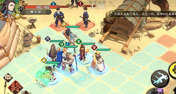 光属性角色可选择杨云佐,他能为群体提升1点移动力,自身拥有5点移动力,战后保留剩余移动力,还具备无冷却时间的补刀技能。