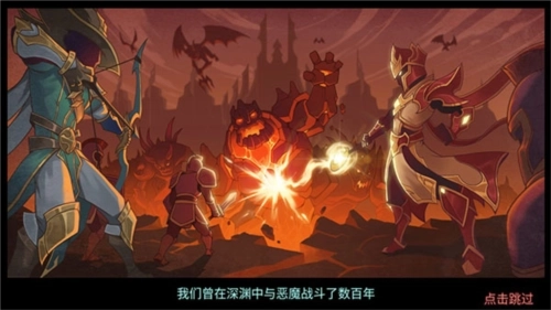 1、首次进入《火柴人战争3》游戏的玩家会看到一段动画,点击跳过按钮就能直接进入游戏。