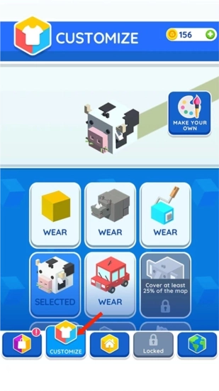 8、在【CUSTOMIZE】界面中,能够选择不同样式的方块皮肤。