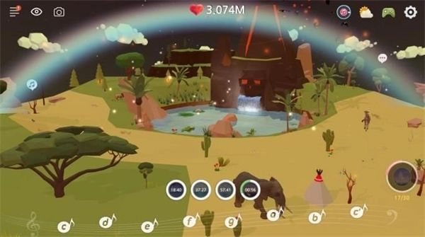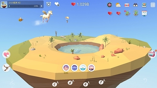 4、当绿洲等级提升时,其地形会随之改变,同时还会涌现出树木、动物等新的元素。借助音符演奏这一方式,玩家能够与游戏内的各类对象展开互动。
