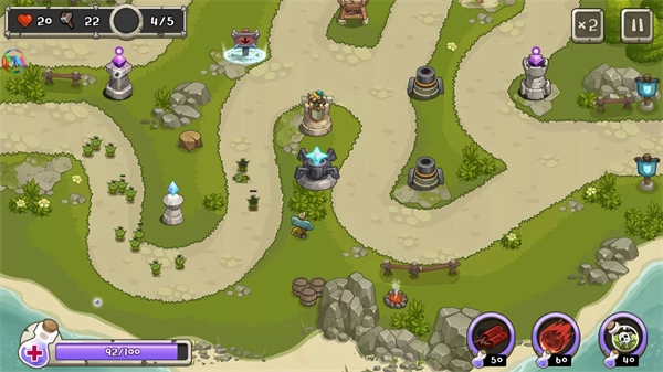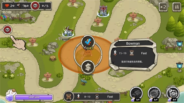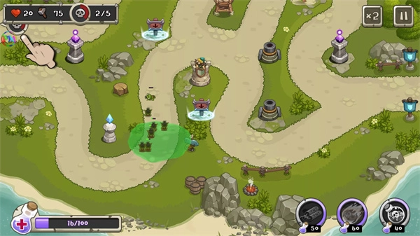 塔防之王,也叫作Tower Defense King,有着20多个地图的塔防闯关。玩家需要在关卡中布置不同类型的防御塔,只要有敌人靠近,那么就能自动发动攻击,一切的目标就是阻止敌人攻击城堡,并且还能随时使用酷炫技能,就能一次消灭大量的敌人,过关不成问题。