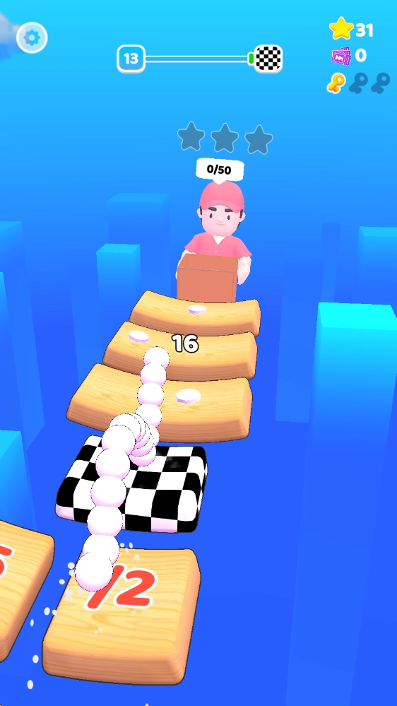 脑洞闯关达人(Count and Bounce)是一款结合了趣味闯关与模拟经营元素的休闲小游戏。在游戏的趣味场景里,玩家需要操控道路上的木板进行摆动,让小球能平稳落在木板上,随着前进小球数量还会不断增加,直到抵达终点!不过到达终点只是游戏的开始,你可以把收集到的小球放进自己的加工厂,将它们加工成可爱的小鸡公仔或是各类玩具,再通过售卖赚取财富!游戏的整体玩法十分有趣,而且还有各式各样的精美皮肤等待解锁使用哦!