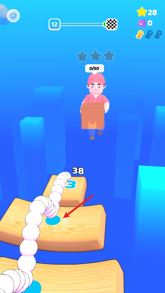 在到达终点之前,会出现三块木板,每块木板上都有白色的小点。当小球触碰到这些小点时,小点就会变成蓝色。只要把所有小点都变成蓝色,就能得到额外的奖励。
