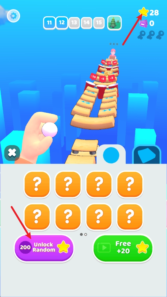 在游戏里闯关能收集星星,用这些星星可以随机解锁不同的小球和木板皮肤,让挑战变得更有意思。