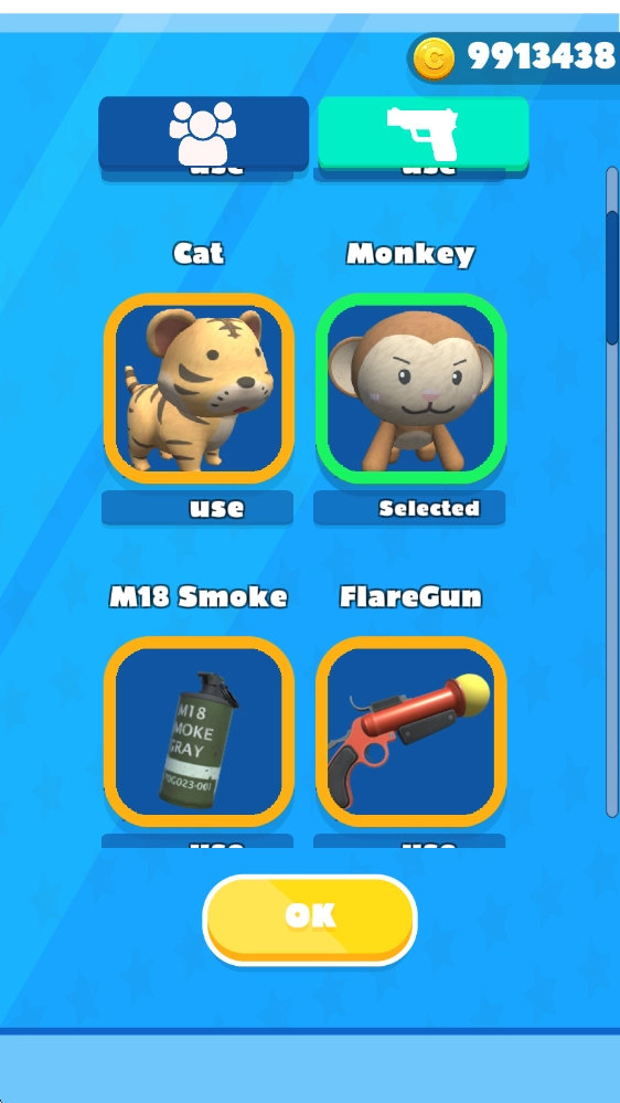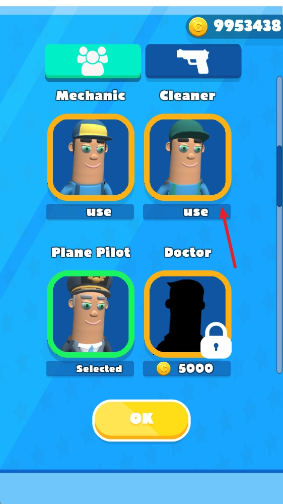 进入后,我们可以用金币解锁角色,点击即可切换。