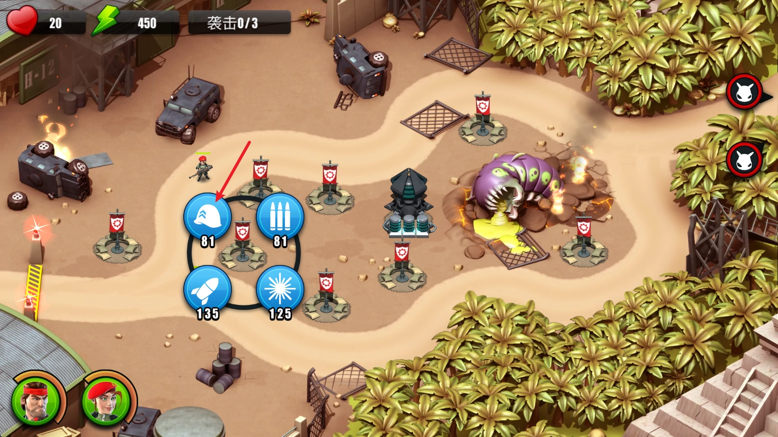右下角还有各种支援道具可以使用,例如空袭。