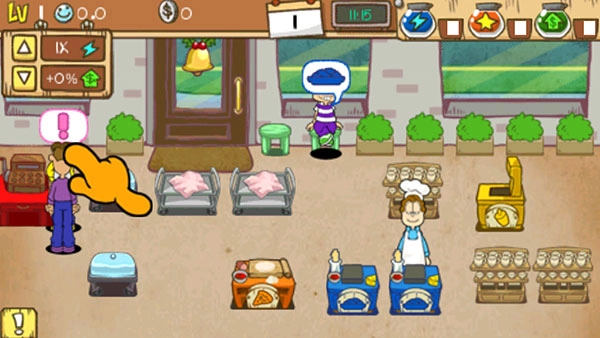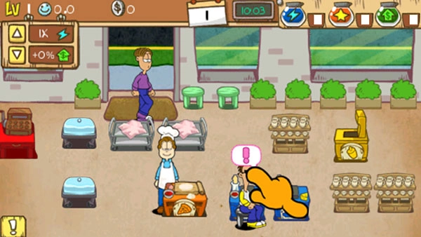 前期尽量把左上角的加速度调到两倍甚至三倍(不是药水瓶)。我偶尔会这么尝试,即便偶尔脑子犯迷糊,让一两个客人生点气,但营业额反而更高,节奏也更快,整个过程精彩多了。