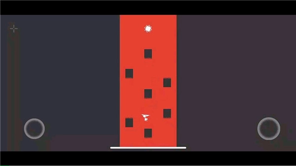 第五关采用竖屏模式,需要通过持续跳跃切换场景来向上攀爬。当触碰到上方的白圈后,场景会切换为横屏,此时继续按照初始的方式向上跳跃就能推进关卡。