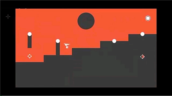这是初始教学关卡,本关背景分为上下两部分。请大家留意上半部分的颜色变化规律:当上半部分背景为黑色时,红色的跳跃站立柱子是可站立的;当再次跳跃后,上半部分背景变为红色,此时黑色的跳跃站立柱子则变为可站立状态。大家可以通过这一特性来初步熟悉游戏的整体玩法。