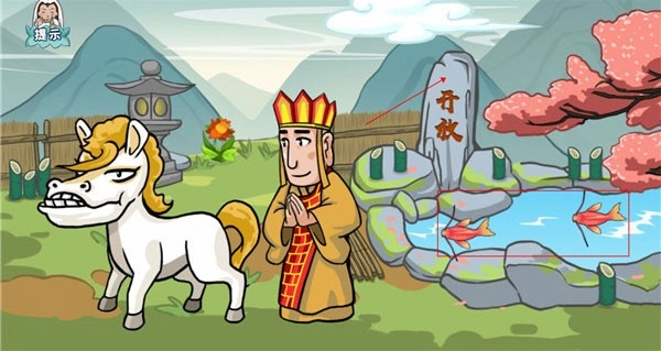 第四关的操作步骤如下:先点击石碑上的“不”字,使其切换为可开放状态;当水中出现蝌蚪后,持续进行合成操作,合成顺序为蝌蚪→青蛙→鲤鱼→小青龙;最后将小青龙拖动至白马上,即可完成进化,得到白龙马。