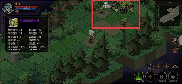 5、屏幕右下角支持配置多个技能,解锁后可拖动至技能栏使用,还能通过技能升级来进一步强化角色属性。