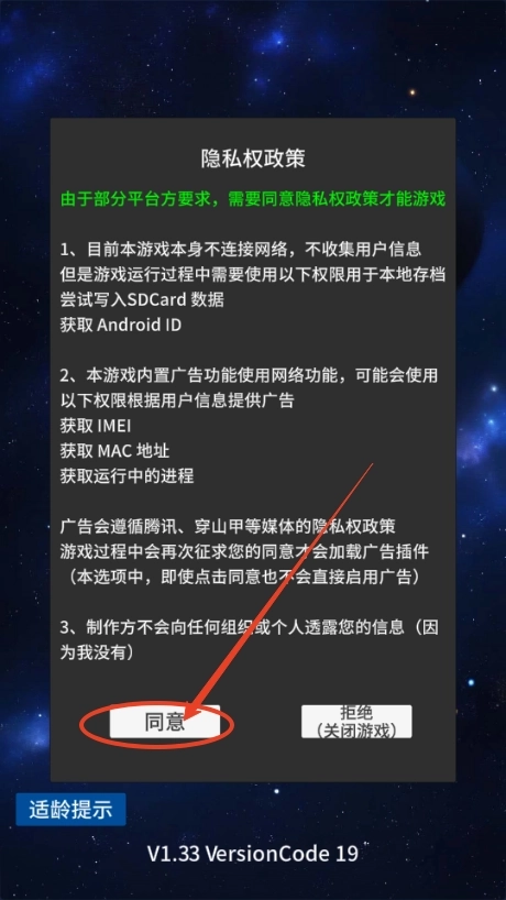 2、点击同意用户隐私政策