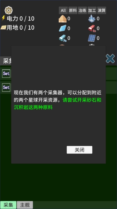 9、现在我们有两个采集器,可以分配到附近的两个星球开采资源,请尝试开采砂石和沉积岩这两种原料