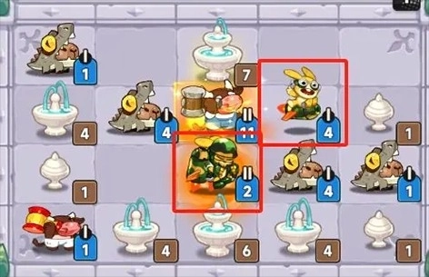 Tips:如果一开始萌宠站位不好,第一轮我们可以不着急合成,先挨打一回合,第二轮把棋子铺满再开始合成。