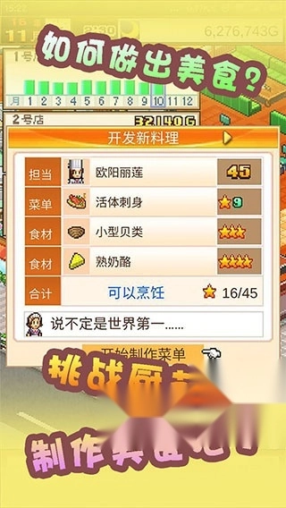 3、玩家对原料、金币、人员等资源的合理配置与管理,是餐厅得以发展的关键所在。