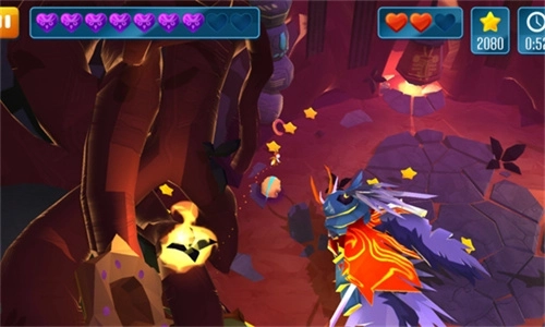 5、还能在场景里切换战斗场景,比如在某些比较昏暗的战斗场景中发起激烈又惊险的攻击,同时要及时收集小星星之类的资源物。