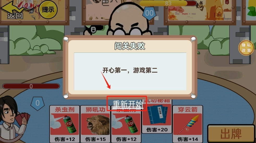 4、要是闯关没能成功,点击“重新开始”按钮,就可以再次挑战该关卡。