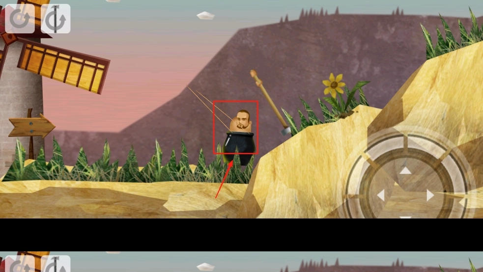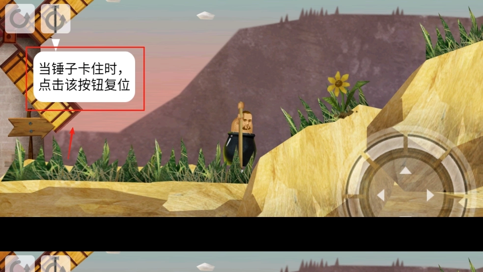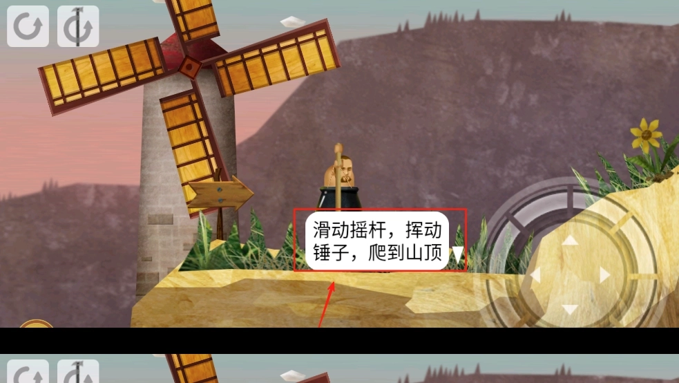 2、滑动屏幕上的摇杆,控制角色挥动锤子,攀爬到山顶。