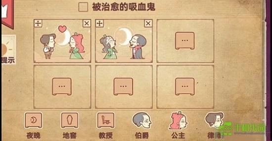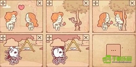 1、玩家先把花园放进第一个框里,再将夏娃和亚当放进去,他们就会相爱。