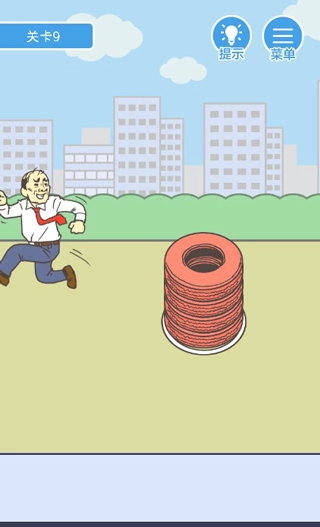 9、米其林,开局,移动画面来到场景2,点击上面的三个轮胎,获取。然后,返回到场景1,将轮胎依次叠放在上面,然后点击轮胎,遮挡住自己,过关!