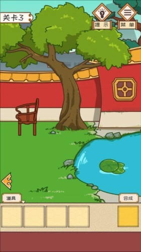 1、在皇上请留步游戏中踩上椅子攀爬到树上,拿到一根树枝,然后用树枝在荷塘中获取荷叶。