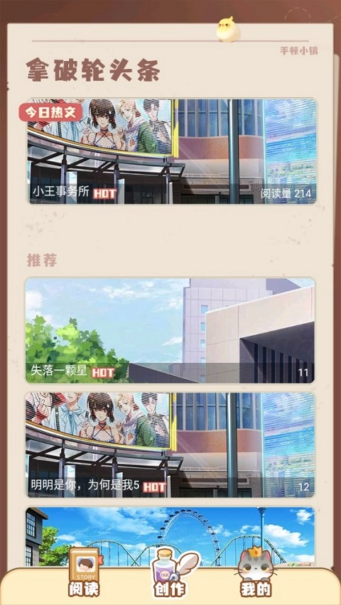1、底部设有阅读、创作、我的三项功能,点击“创作”即可新建作品。