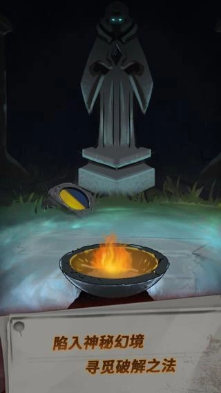 9、在木马附近获取提示“极左之地暗之魔盒”,再次尝试时持续向左移动,得到提示“最黑的路通向光明”以及一张提示图——黑色月亮的右下方有个特定图案,路径尽头有阴之花和暗之魔盒。在香炉中点燃四朵花后进入梦境,白天期间捡到火石与树杈,还发现了树桩下方的盒子,盒子表面绘有金色的鸽子、石头、人物,以及黑色的蝙蝠、墓碑、花朵;调整钟表后,在夜晚点燃篝火,点击篝火即可退出梦境。分别进入后广场黄色与紫色花朵的幻境,数清楚其中各类元素的数量,从而得到一组6位数的密码,返回梦境用该密码打开盒子,获取神之水晶;切换到夜晚场景,将水晶放入雕像中,再切回白天,会发现原本石化的预言书能够翻开了,上面显示“暗之魔盒开启”。重新走一遍相关路径打开盒子,得到暗之轮盘。回到最初寄存处旁边的圆形门位置,把两个轮盘装进去,并调整到提示画所显示的角度。