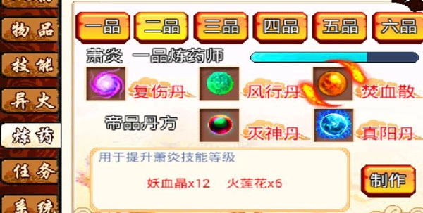 首先技能提升需要一个【焚血散】