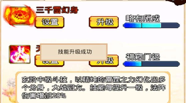 炼制完后即可在“技能”栏中点击升级提升。