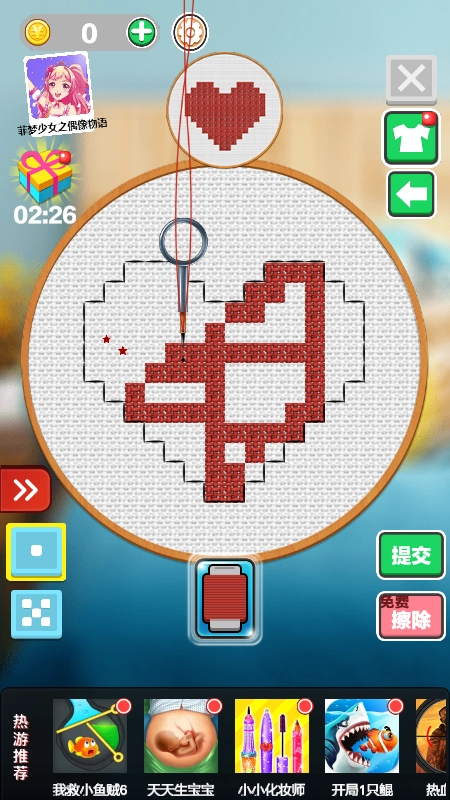 刺绣高高手是一款休闲刺绣小游戏,看着图案在自己手中慢慢绣出,玩家需要根据给出的样稿绣出各种精美的图案。只要快速掌握技巧,这绝对是一款十分值得体验的游戏。多掌握一些诀窍,就能绣得更顺手。有兴趣的话,快来刺绣高高手试试吧!