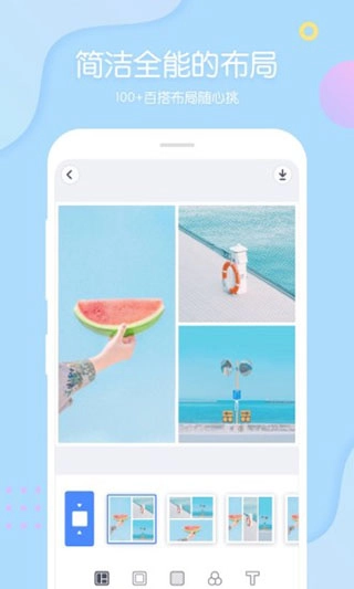 1、从1到9张图的拼图布局均支持1:1、3:4、9:16等多种比例,整体布局样式超过100种。