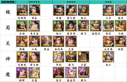 推荐榜主要面向普通玩家前期常用的英雄,主公和难以获取的稀有武将未包含在内。其中5星推荐的是前期使用体验较好的武将,建议根据实际抽到的武将进行搭配。