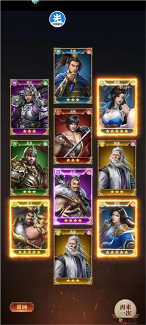 阵容一般由铁卫、奶妈、输出和摇摆位这四个角色类型共5人构成。英雄升星需要消耗同名以及同阵营的英雄,因此前期建议先使用系统赠送的高级招募令,然后依据招募到的武将,再去使用指定招贤令以及无限连抽中的阵营自选功能。招贤阁里每个阵营第一次使用招贤令时,必定能获得5星英雄,所以推荐每个阵营先招募一次,根据抽到的英雄再进行阵容搭配。