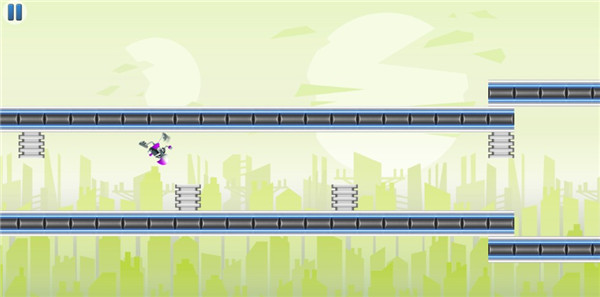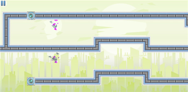 5、完成激光照射后,我们会分裂成两个分身,游戏难度将大幅增加,需要同时操控两个角色躲避障碍物
