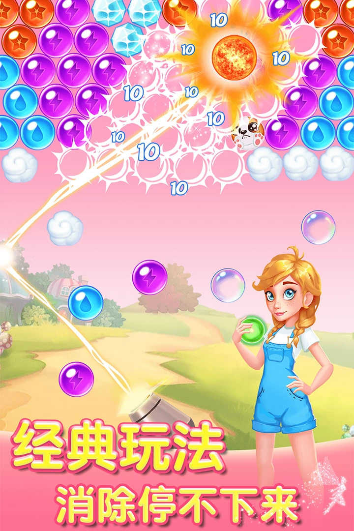 在可爱的泡泡世界里,和小伙伴们一起开启欢乐的闯关冒险,记录每一个美好的瞬间,只需动动手指就能享受消除的乐趣;这里有丰富的关卡任务,完成后还能获得红包奖励,经典的玩法搭配梦幻的地图设计,等待你去好好探索一番。
