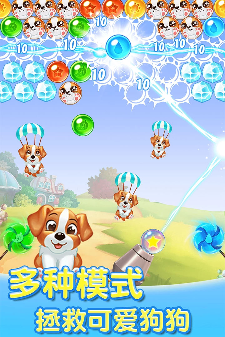 3、使用泡泡击碎泡泡解救萌宠动物;