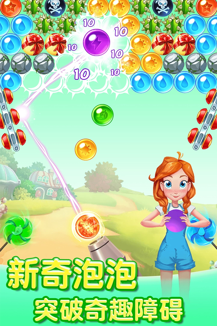 丰富的道具系统:解锁并熟练运用超级泡泡、泡泡补充剂、炸弹等各类道具,能够让策略布局更趋完善,助力玩家提升游戏分数。