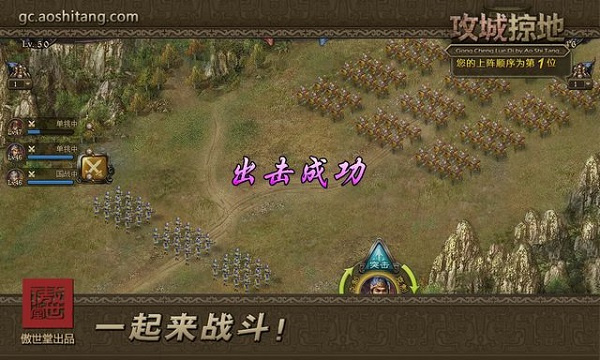 国战里防守方玩家能选择主动出击,出击有相应的成功概率,而且每次出击都会有特定的冷却时间。要是出击成功,战斗就会开启和对方战斗队列里某个玩家的单挑模式。那些按捺不住被大军攻城、想靠自己的勇武来削弱敌方战力的玩家,选好时机,出击吧!